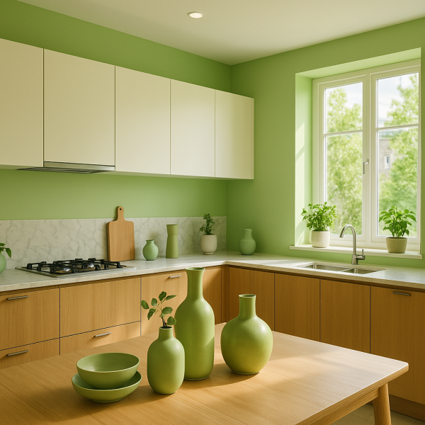 - Peinture murale : Idéale pour des zones comme la cuisine ou la salle de bain, le pistache insuffle légèreté et modernité.
