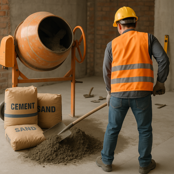 - Mélange des composants : Dans une bétonnière, commencez par ajouter le ciment et le sable, puis incorporez progressivement l'eau.