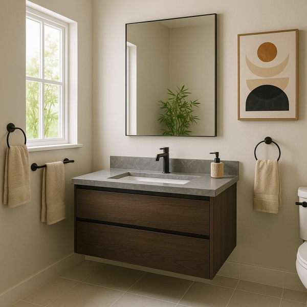 La hauteur de la vasque doit également prendre en compte l'esthétique générale de votre salle de bain. Le choix des matériaux pour la vasque doit s'accorder avec le design global, que ce soit en couleurs, en textures ou en finitions.