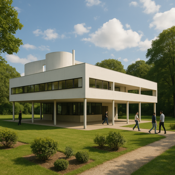 La Villa Savoye, construite en 1929, est sans conteste l'une des œuvres les plus célèbres de Le Corbusier. Elle incarne à la perfection ses cinq points de l'architecture moderne et est souvent citée comme un symbole d'innovation architecturale. Le bâtiment, à la fois fonctionnel et esthétiquement plaisant, illustre l'harmonie entre la structure et son environnement.