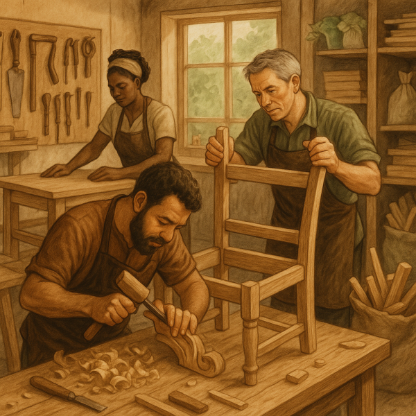Maison Éthier a débuté comme une entreprise familiale dédiée à la création de mobilier de qualité. Le savoir-faire artisanal et la tradition familiale ont toujours été au cœur de ses activités. Chaque pièce de mobilier racontait une histoire, un héritage transmis de génération en génération. Ce souci du détail et de la qualité a permis à la maison de forger une réputation solide sur le marché du mobilier haut de gamme.
