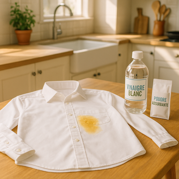 Si la tache est fraîche, plusieurs solutions simples et accessibles peuvent vous aider à l’éliminer. Voici les plus recommandées :